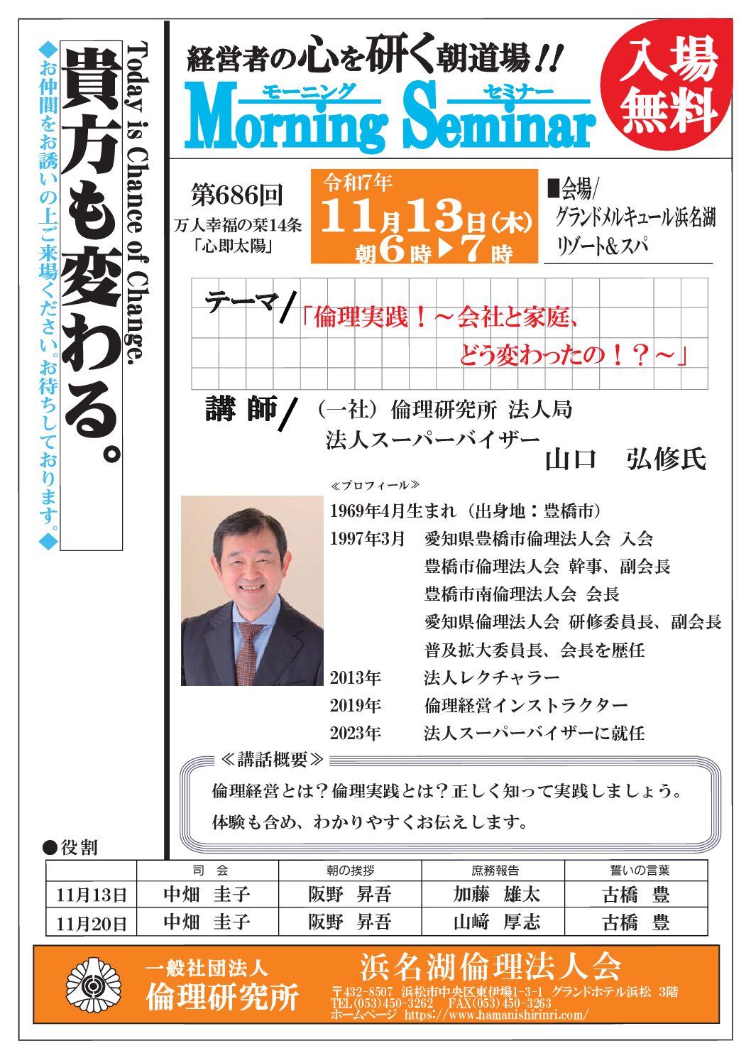 モーニングセミナー「倫理実践!~会社と家庭、どう変わったの!?~」第686回 テーマ「倫理実践!~会社と家庭、どう変わったの!?~」と題して (一社)倫理…