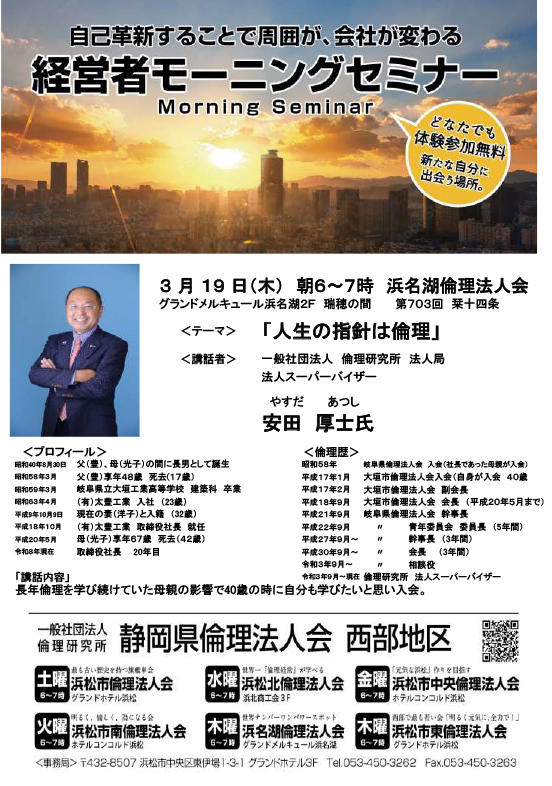テーマ「人生の指針は倫理」と題して